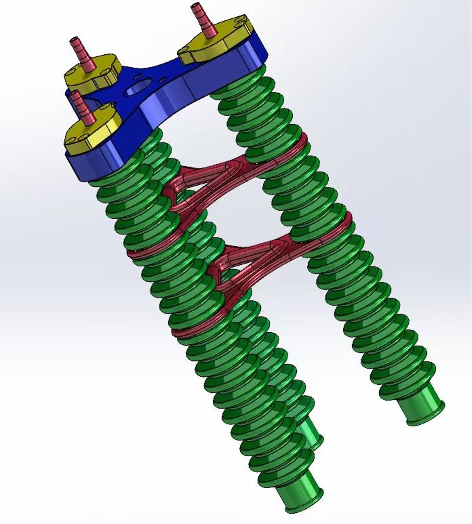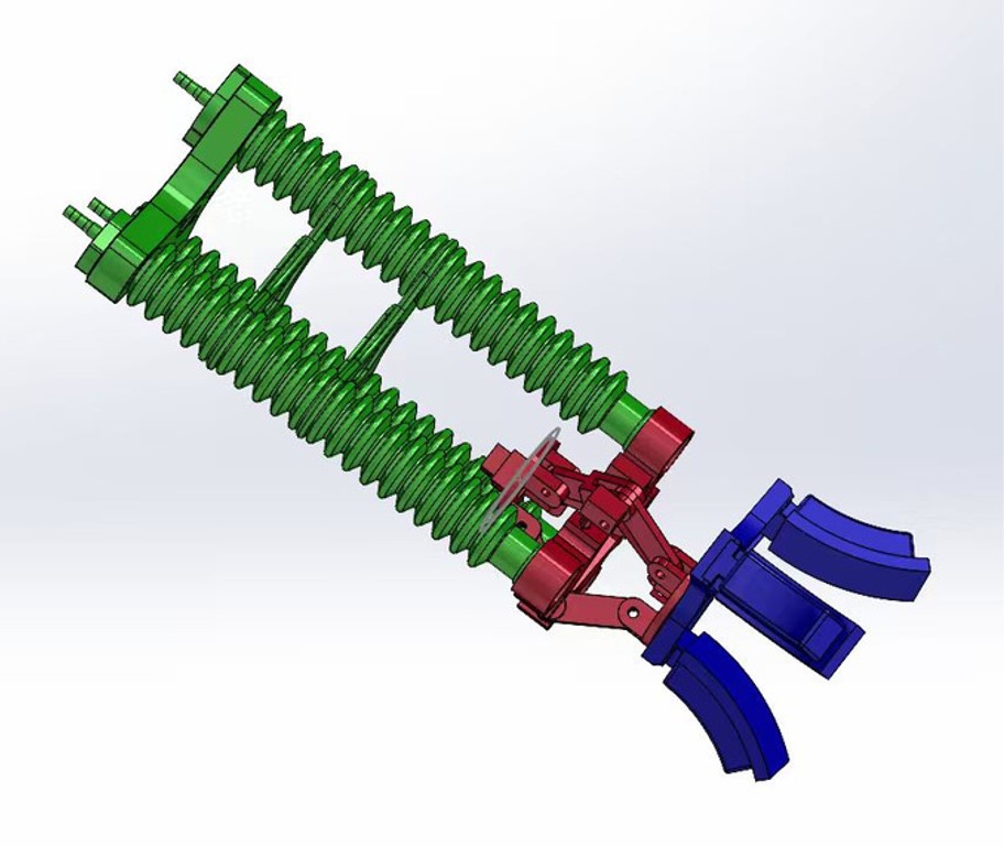 Our space-debris cleaning satellite that uses positive and negative air pressure to drive multi-module bellows actuators, enabling bio-inspired bending and grasping to solve the challenge of orbital debris removal.